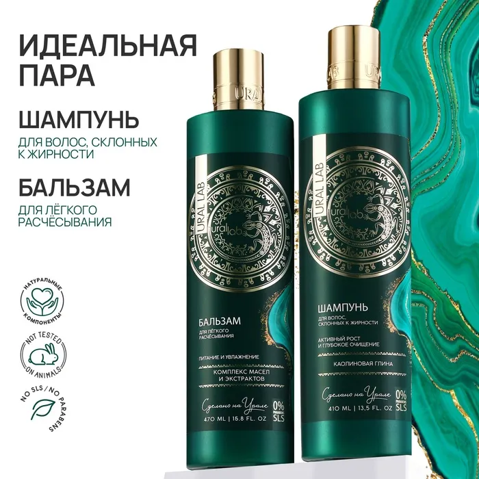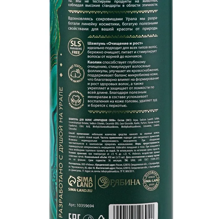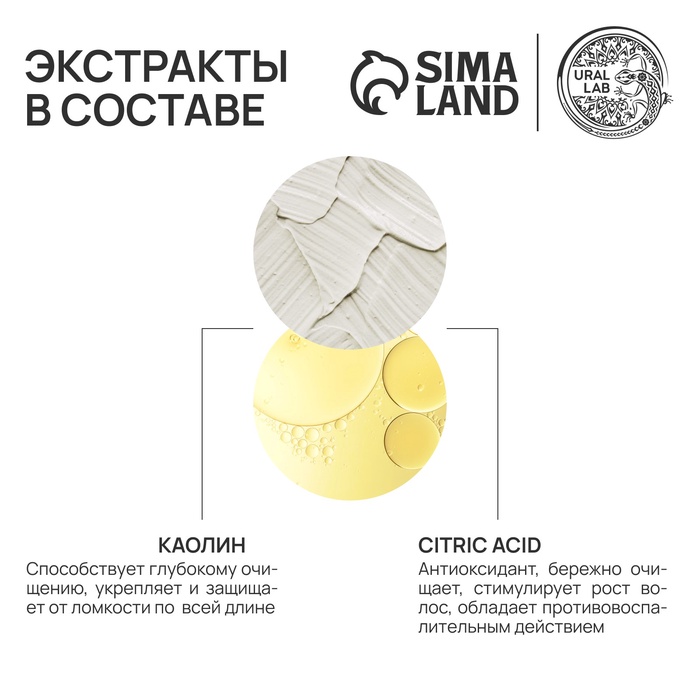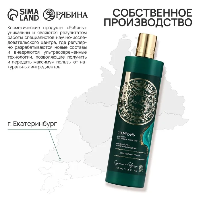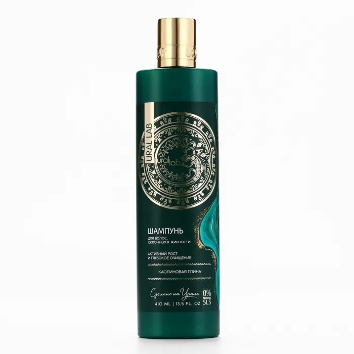 Шампунь для волос с каолиновой глиной, активый рост и глубокое очищение, 410 мл, URAL LAB — Характеристики