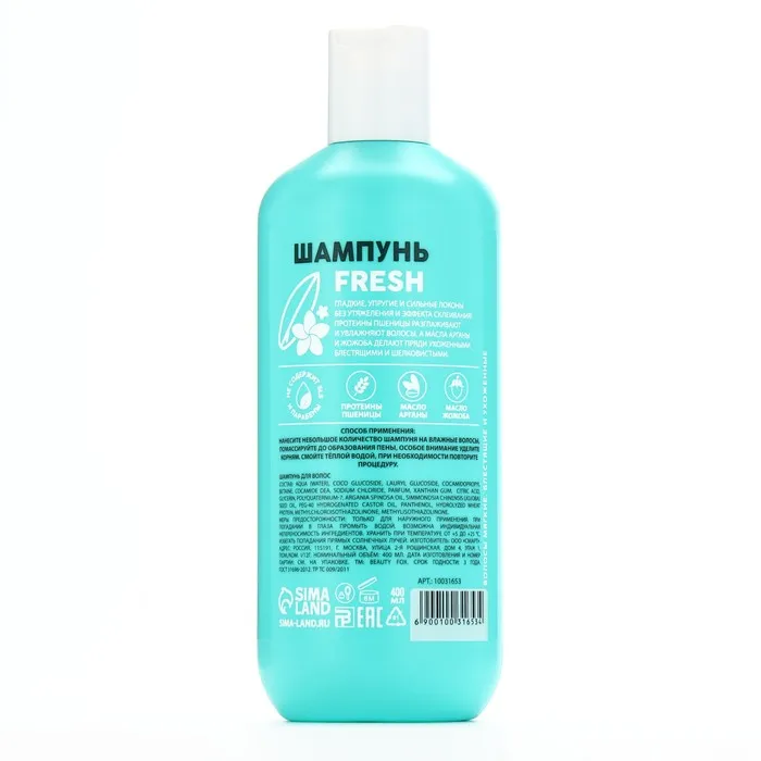 AQUA (WATER), COCO GLUCOSIDE, LAURYL GLUCOSIDE, COCAMIDOPROPYL BETAINE, COCAMIDE DEA, SODIUM CHLORIDE, PARFUM, XANTHAN GUM, CITRIC AСID, GLYCERIN, POLYQUATERNIUM-7, ARGANIA SPINOSA OIL, SIMMONDSIA CHINENSIS (JOJOBA) SEED OIL, PEG-40 HYDROGENATED CASTOR OIL, PANTHENOL, HYDROLYZED WHEAT PROTEIN, METHYLCHLOROISOTHIAZOLINONE, METHYLISOTHIAZOLINONE.