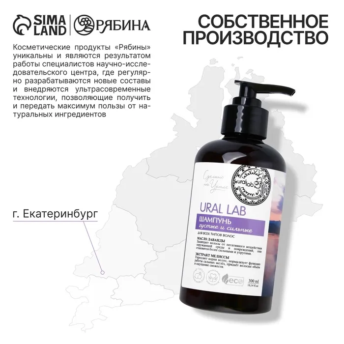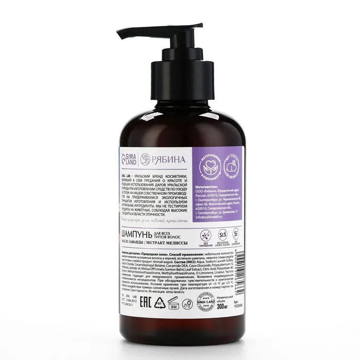 Шампунь для волос с маслом лаванды и экстрактом мелиссы, густые и сильные, 300 мл, ECO LAB by URAL LAB — Характеристики