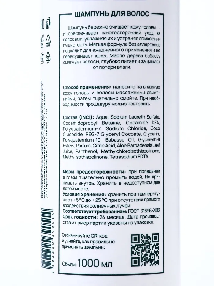 - Шампунь для ежедневного мытья волос мягко и бережно очищает кожу головы, не провоцируя сухость и раздражение.