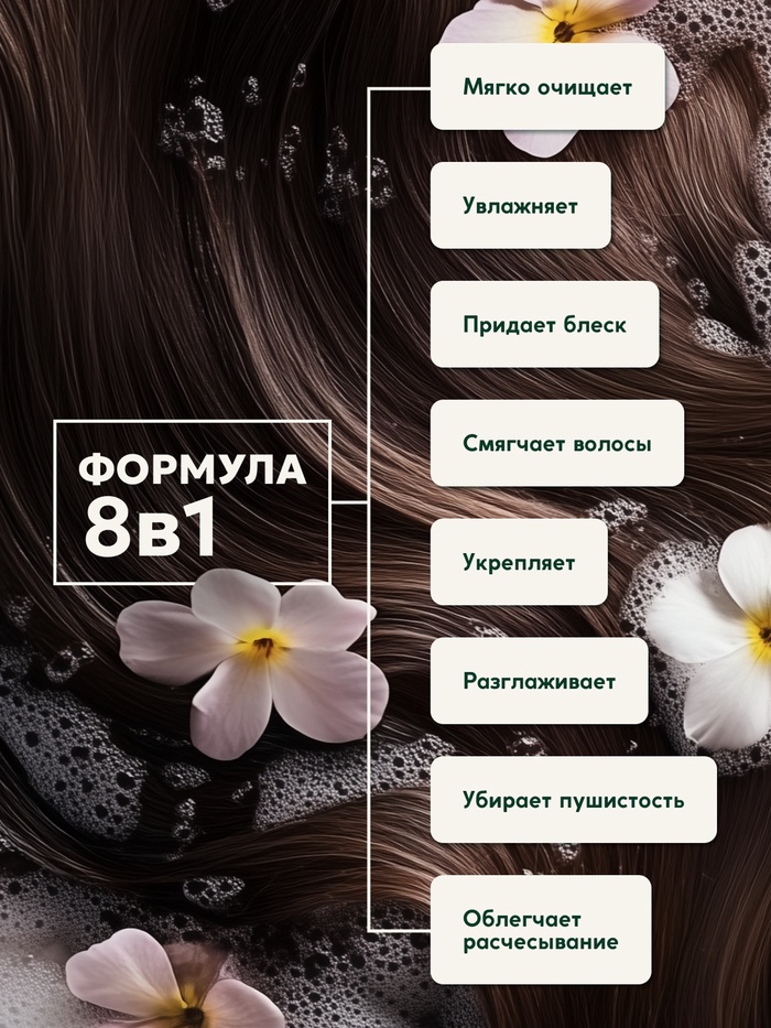 - Благодаря деликатной формуле без аллергенов он подходит для постоянного использования и не утяжеляет волосы.