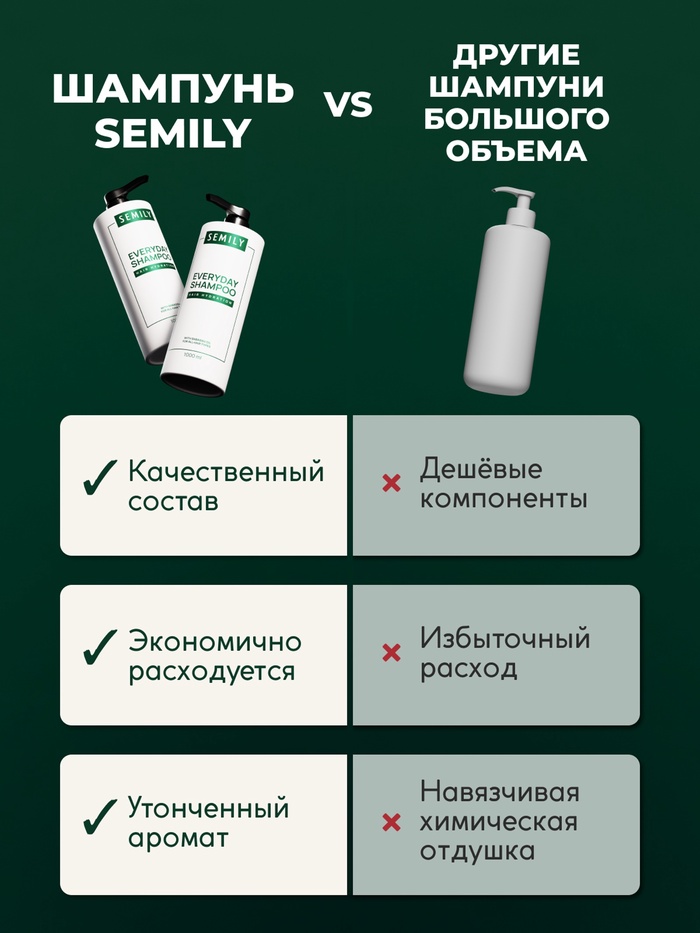 Шампунь для волос Semily для ежедневного применения, 1000 мл — Характеристики