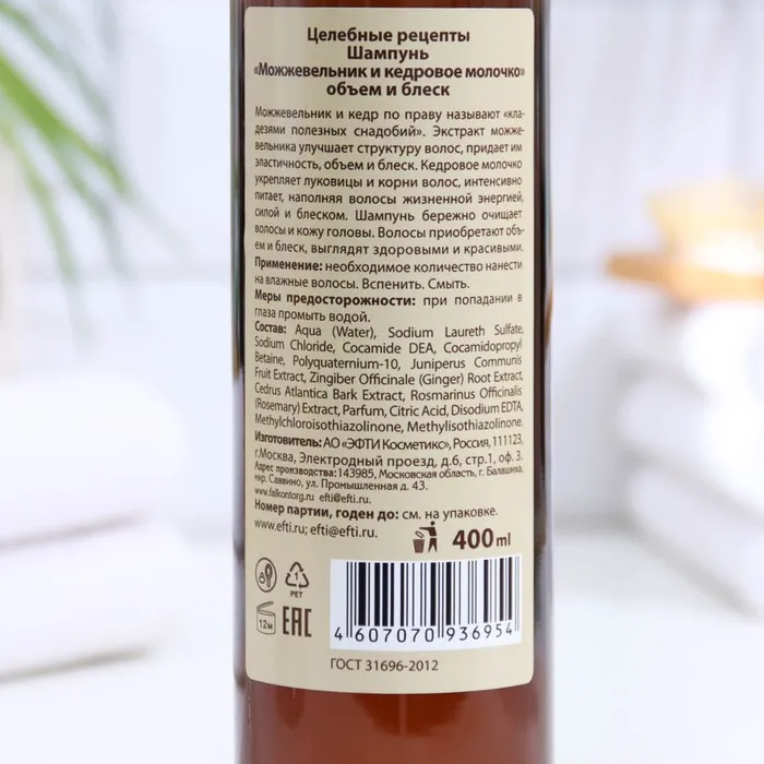 Шампунь для волос Целебные рецепты "Можжевельник и кедровое молочко", 400 мл — Характеристики
