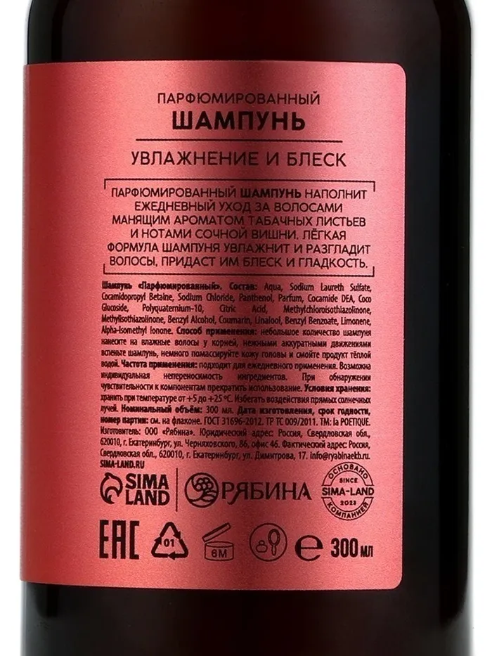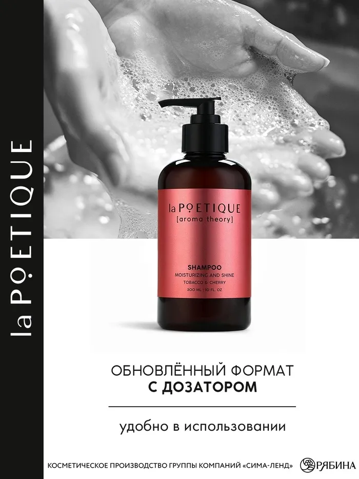 Шампунь для волос, увлажнение и блеск, 300 мл, аромат табака и вишни, LA POETIQUE — Характеристики