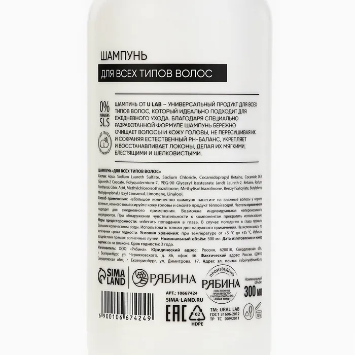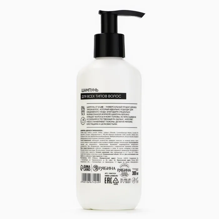 Шампунь для волос, увлажнение и питание, аромат цветочный, U LAB prof, 300 мл — Характеристики