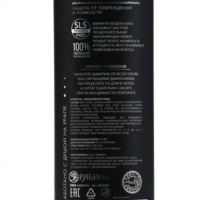 Шампунь для волос, увлажнение, питание, насыщение и защита от повреждений, 410 мл, BASIC LINE by URAL LAB — Характеристики