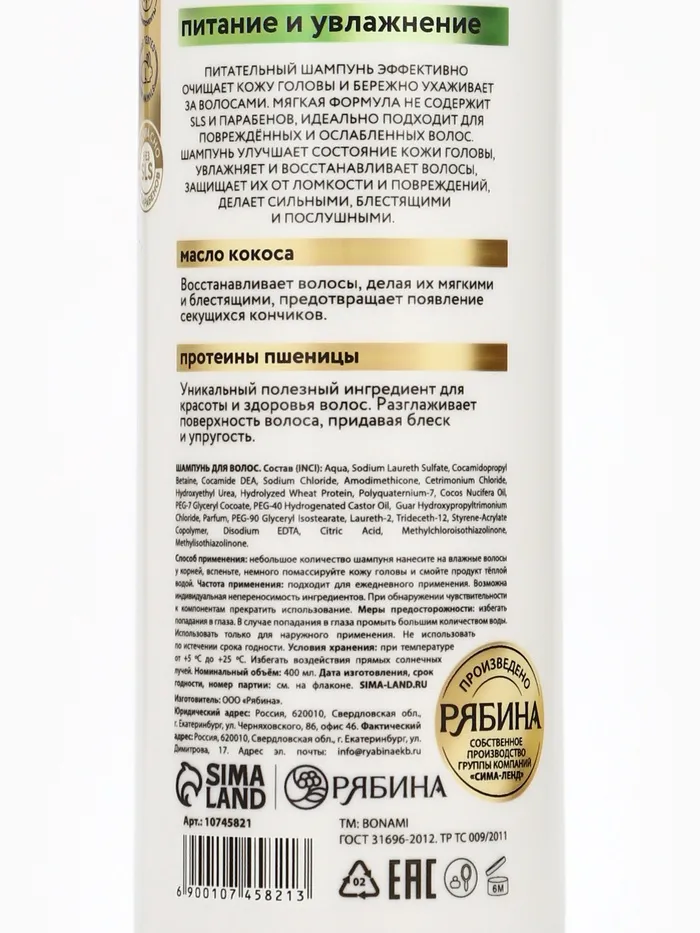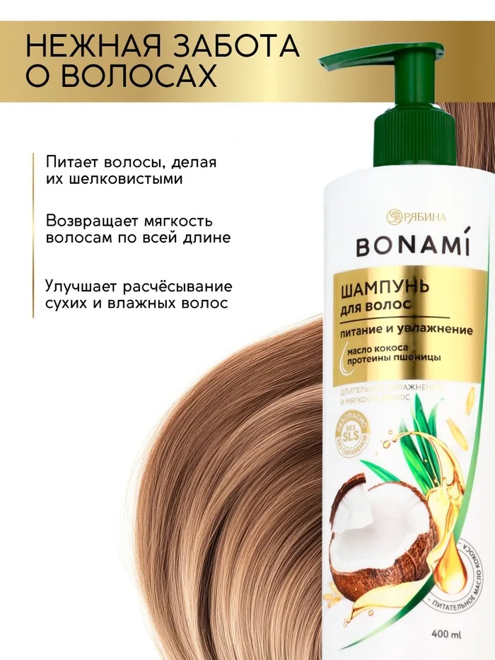 Шампунь для волос женский «Питание и восстановление», 400 мл, BONAMI — Характеристики