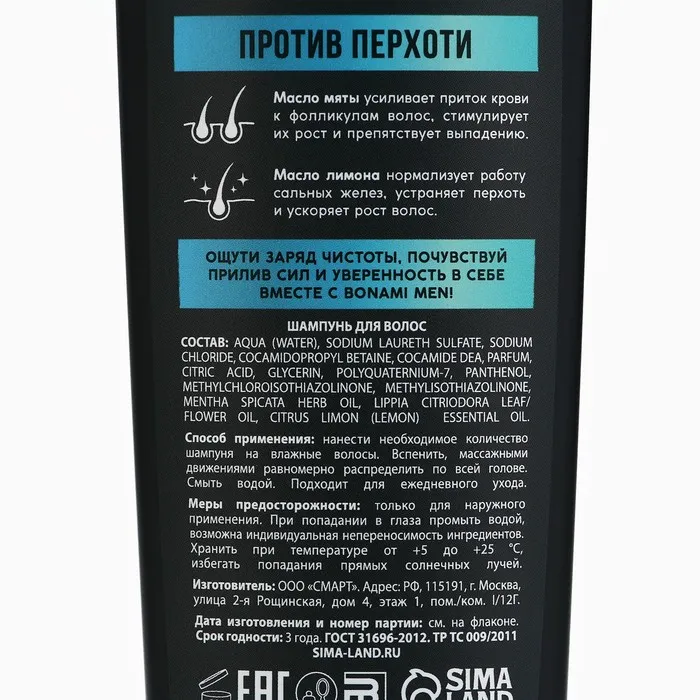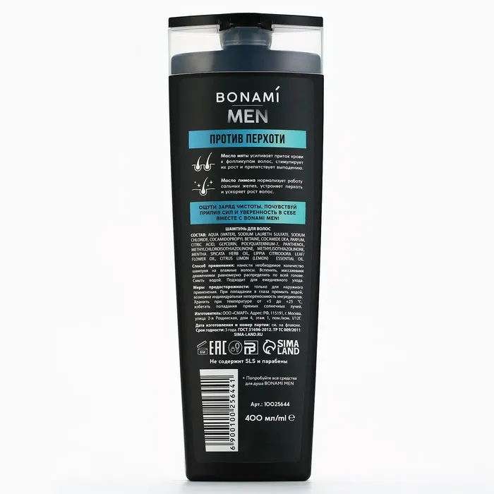 Шампунь для всех типов волос против перхоти For men, глубокое очищение, 400 мл , BONAMI — Характеристики
