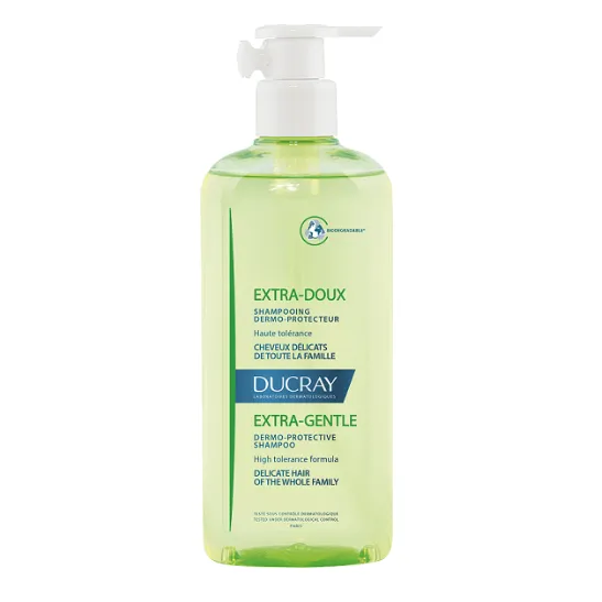 Защитный шампунь Ducray Extra-Doux для частого применения делает волосы мягкими, блестящими и нежными.