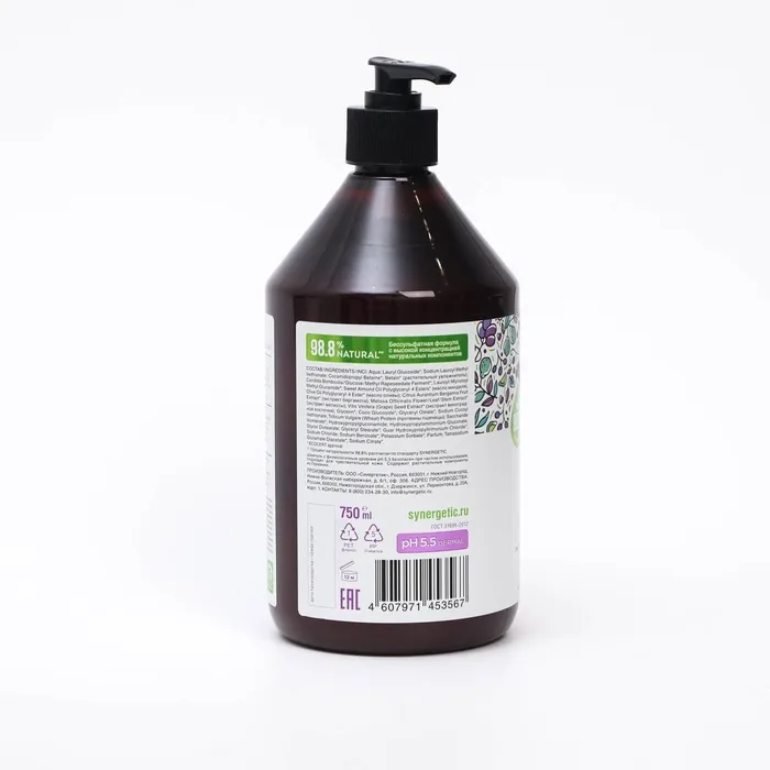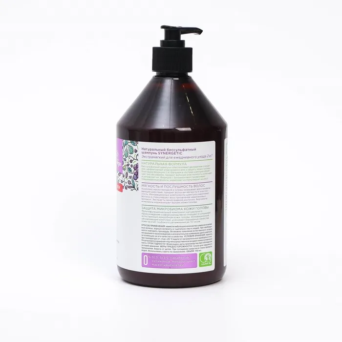 Эффективное средство для очищения кожи головы и всех типов волос — более чем на 98% состоит из натуральных компонентов. Шампунь деликатно очищает, эффективно ухаживает за волосами и защищает кожу головы. Благодаря формуле 2 в 1 бальзам в составе шампуня облегчает расчесывание, придает волосам эластичность, смягчает и увлажняет их. Формула с бетаином восстанавливает поврежденные волосы, укрепляет и стимулирует их рост. Натуральный шампунь содержит комплекс масел миндаля и оливы, который восстанавливает волосы, придает им мягкость и эластичность. Активные компоненты в составе шампуня укрепляют волосы и стимулируют восстановление кератиновых волокон. Экстракты виноградной косточки, бергамота и мелиссы нормализуют баланс кожи головы. Мультифункциональный компонент натурального происхождения софоролипид мягко очищает кожу головы и сохраняет естественный микробиом, а инновационный увлажняющий комплекс усиливает барьерные свойства кожи и обеспечивает до 72 часов глубокого увлажнения. Физиологичный уровень pH 5,5 устраняет сухость кожи головы и гарантирует безопасность при частом использовании средства даже для чувствительной кожи. Натуральный шампунь не содержит SLS, SLES, парабенов, силиконов, минеральных масел и красителей, а также компонентов животного происхождения, не тестируется на животных и сертифицирован британской организацией The Vegan Society. Знак Vegan — мировой стандарт этичной продукции.