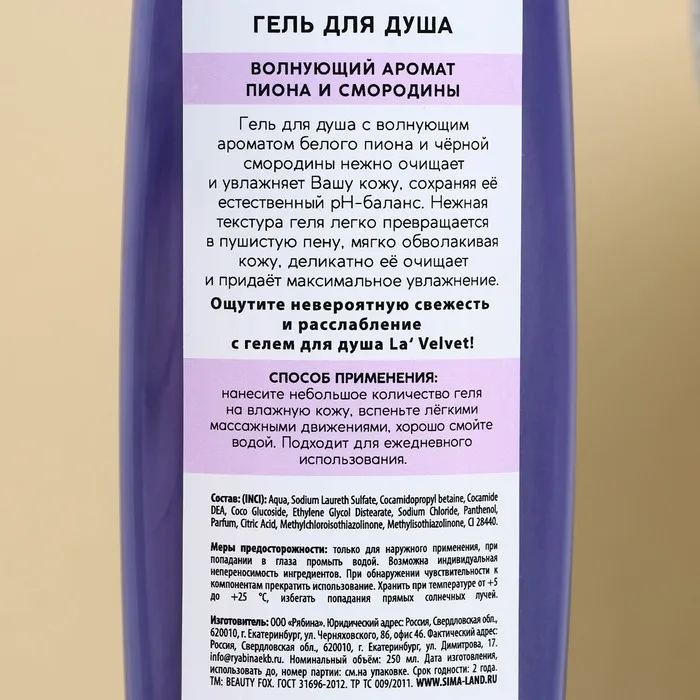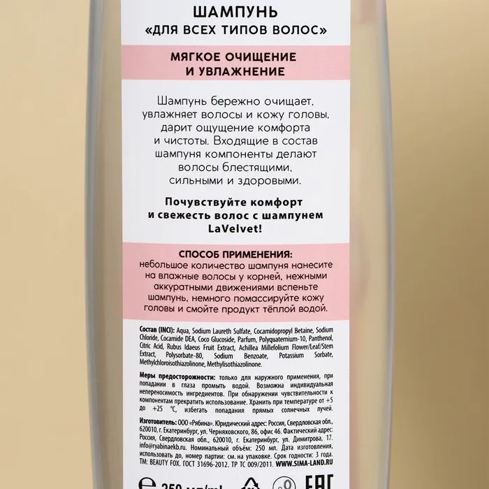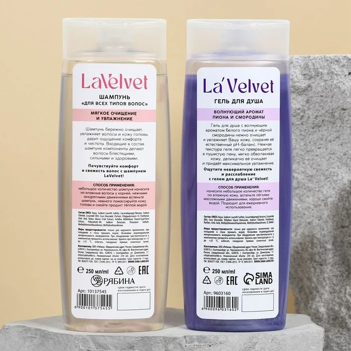 Шампунь и гель для душа, 2 х 250 мл, подарочный набор косметики, LaVelvet — Характеристики