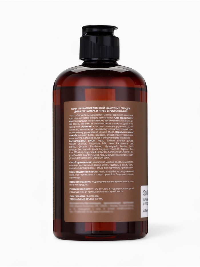 Шампунь и гель для душа парфюмированный Soul&Skin амбра и перец, 470 мл — Характеристики