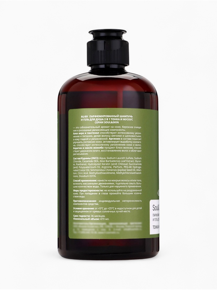 Шампунь и гель для душа парфюмированный Soul&Skin тонка и мускус, 470 мл — Характеристики