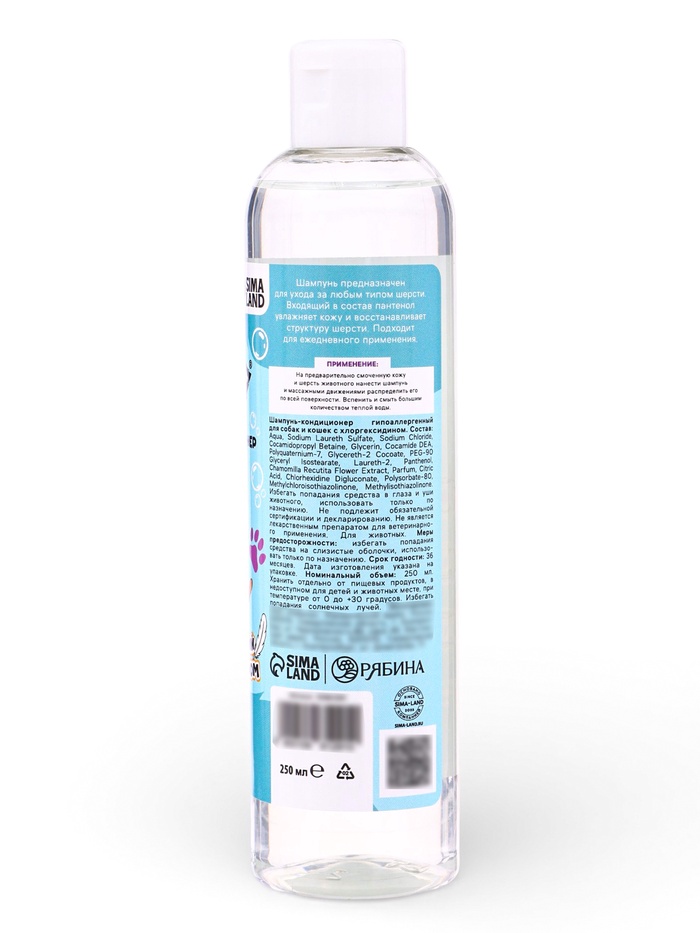 Шампунь - кондиционер для собак и кошек, 250 мл, гипоаллергенный, с хлоргексидином — Характеристики