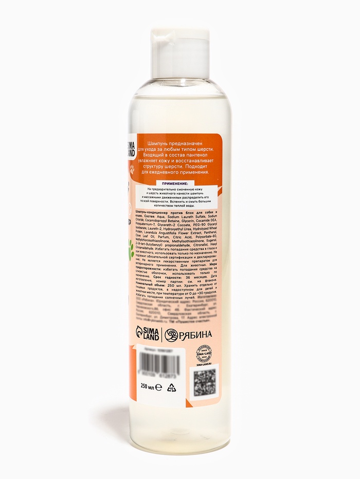 Шампунь - кондиционер для собак и кошек, против блох, 250 мл — Характеристики
