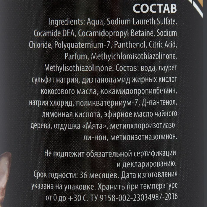 Состав: сульфат натрия, диэтаноламид, кокаамидопропилбетаин, динатрий сульфосукцинат, поликватерниум-7, лимонная кислота, вода, отдушка Мята, эфирное масло чайного дерева, натрия хлорид, метилхлороизотиазолинон, метилизотиазолинон.