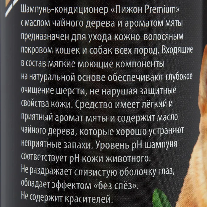 Шампунь-кондиционер "Пижон Premium" для кошек и собак, с маслом чайного дерева и мяты, 250мл.