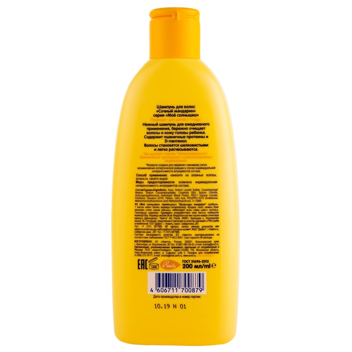 Состав: вода, лауретсульфат натрия, кокамидопропилбетаин, кокоамфомоноацетат натрия, диэтаноламид жирных кислот кокосового масла, хлорид натрия, гидроксипропилтримониум гидролизат пшеничных протеинов, ПЭГ-7 глицерил кокоат, D-пантенол, динатрий ЭДТА, ароматическая композиция, кислота лимонная, ПЭГ/ППГ-15/15 диметикон, метилхлороизотиазолинон (и) метилизотиазолинон, СI 15985.