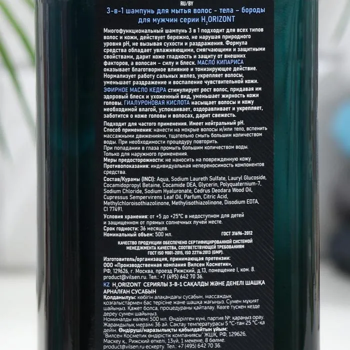 Шампунь мужской для мытья волос, тела и бороды Vilsen, 500 мл — Характеристики