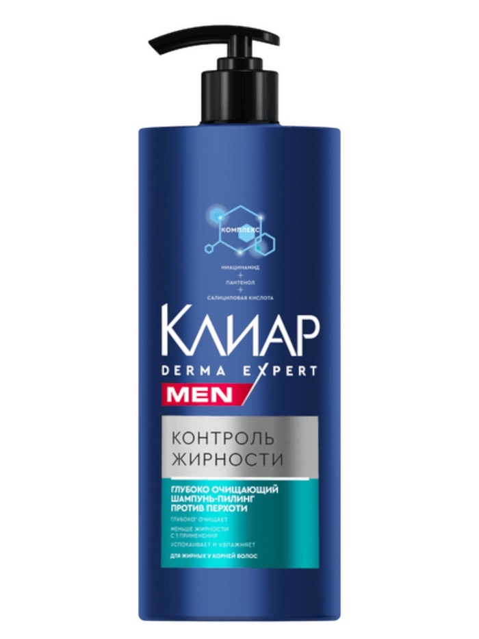 Клиар Men Derma Expert Глубокое очищение — мужской шампунь-пилинг против перхоти с комплексом ниацинамида, пантенола и салициловой кислоты. Средство глубоко очищает, мягко удаляет перхоть, увлажняет кожу головы и волосы.