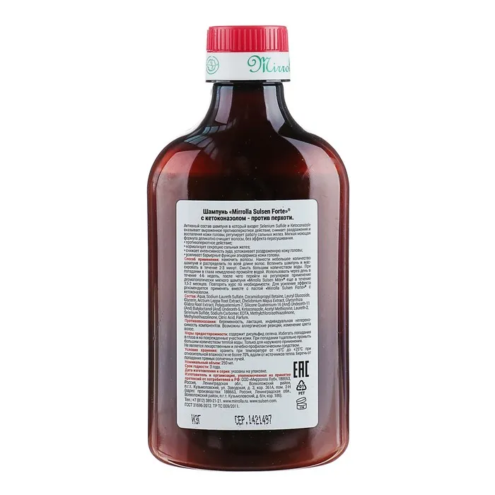 Использовать через день в течение 4–6 недель, после чего перейти на регулярное применение дерматологически мягкого шампуня Mirrolla Sulsen Mite ещё на 1,5–2 месяца. Повторять курс по необходимости. Для усиления эффекта рекомендуется применять вместе с пастой Mirrolla Sulsen Forte.