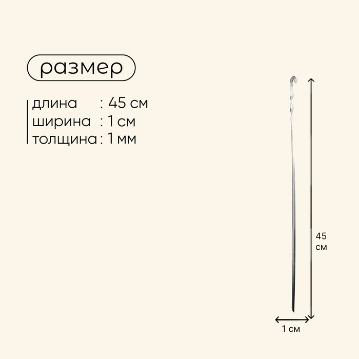 Шашлыки на шампурах — классическое и любимое угощение во время отдыха на природе. Стальная модель с никелевым покрытием не нагревается, устойчива к воздействию кислот и солей. Угловой шампур с витой ручкой держится в нужном положении, что позволяет правильно переворачивать и равномерно прожарить мясо.