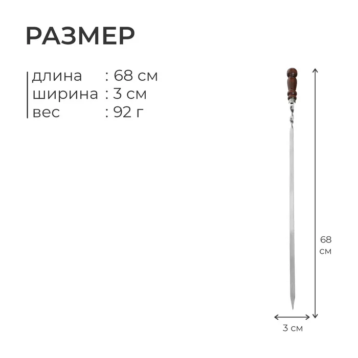 Шампур с деревянной лакированной ручкой, 68 х 1,2 х 0,25 см — Характеристики
