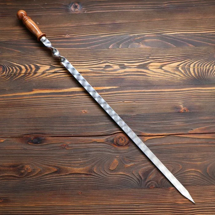 Шампур с деревянной ручкой, рабочая длина - 60 см, ширина - 20 мм, толщина - 2.5 мм, с узором — Характеристики