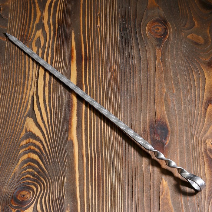 Шампур с ручкой-кольцом, рабочая длина - 50 см, ширина - 10 мм, толщина - 3 мм, с узором
