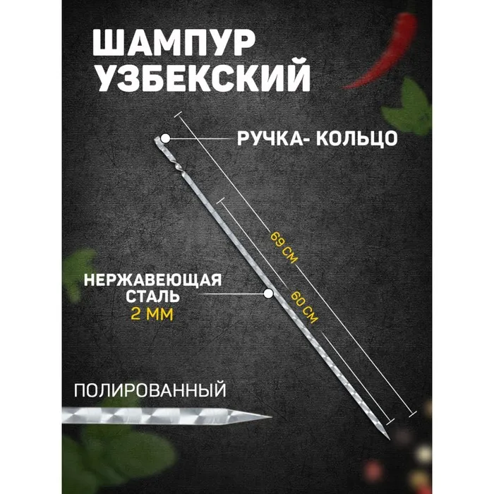 Шампур идеально подходит для приготовления шашлыка и других блюд на мангале.