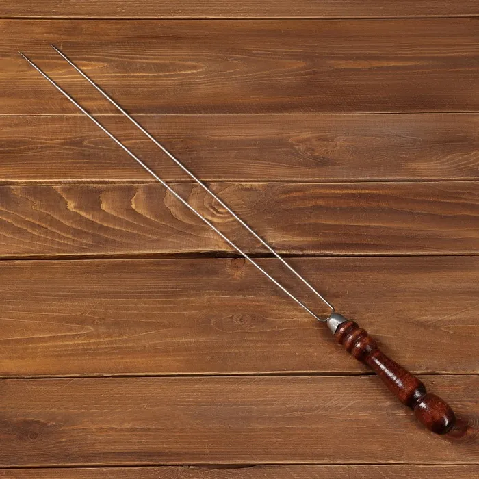 Шампур изготовлен из высококачественной нержавеющей стали, размер и толщина которой обеспечивает равномерную прожарку и сохранение сочности мяса. Резная деревянная рукоять не только придает шарм внешнему виду шампура, но и обеспечивает удобный захват и предотвращает ожоги.