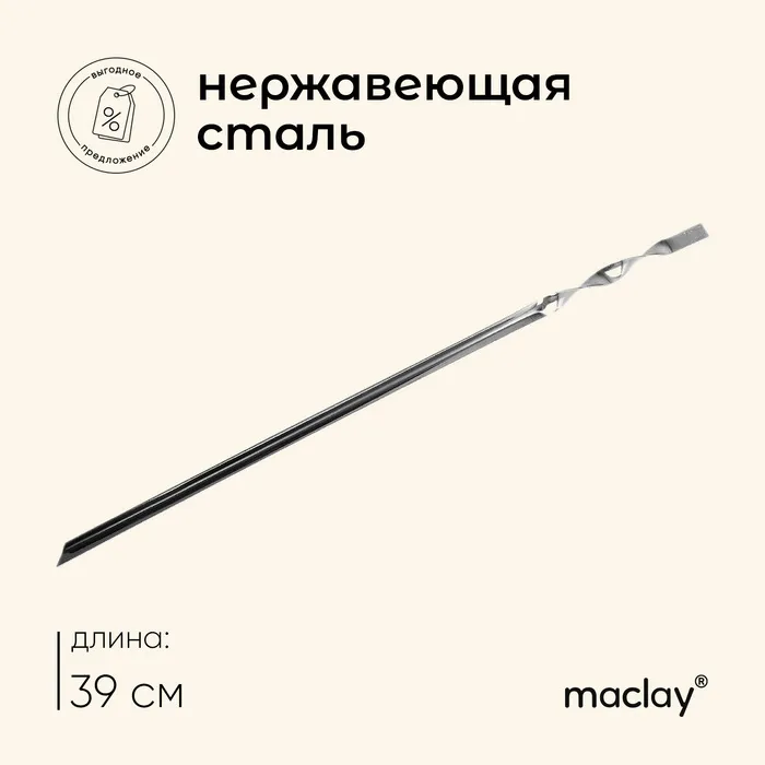 Шампур Maclay, угловой, толщина 0.8 мм, 39х1 см