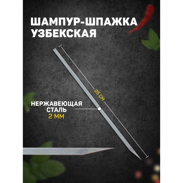 Шампур-шпажка узбекская, рабочая длина - 25 см, ширина - 8 мм, толщина - 2 мм — Характеристики