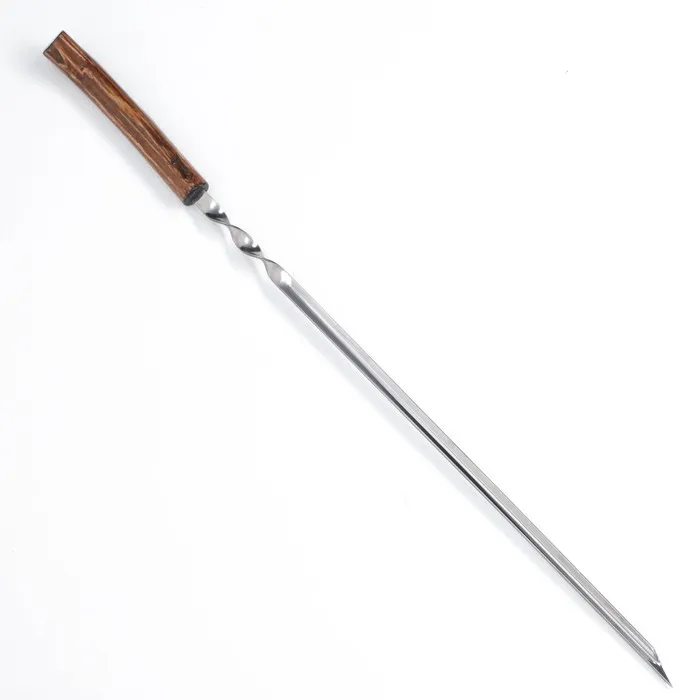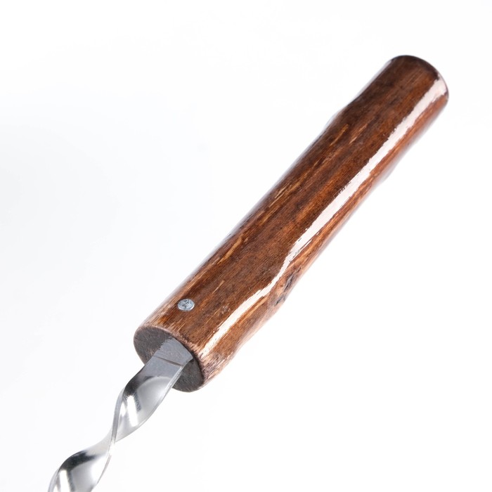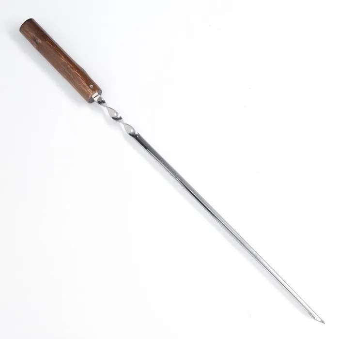 Рабочая часть шампура выполнена из нержавеющей стали толщиной 1,5 мм. Деревянная ручка обеспечивает удобство использования при переворачивании мяса.