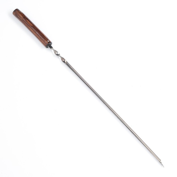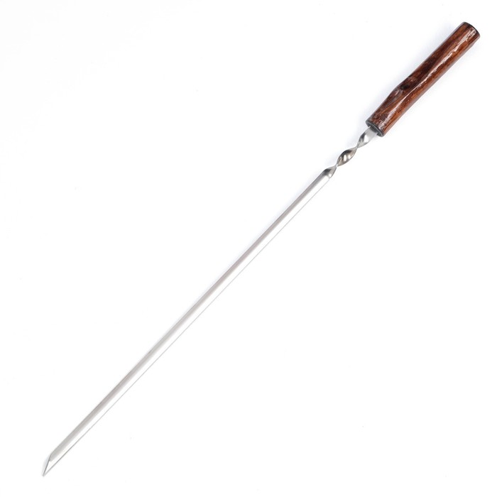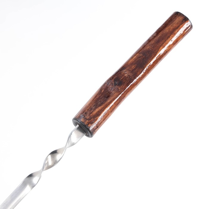 Рабочая часть шампура выполнена из нержавеющей стали толщиной 1,5 мм. Деревянная ручка обеспечивает удобство использования при переворачивании мяса.