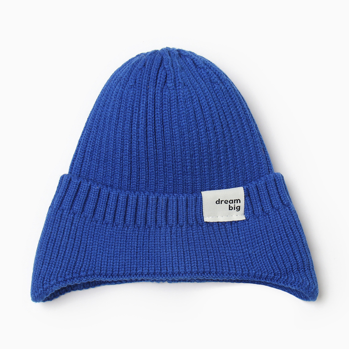 Шапка вязаная детская, цвет синий, размер 35-38см (1-3 мес.)