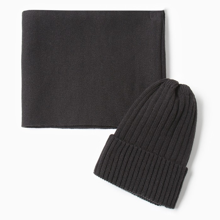 Комплект для мальчика (снуд и шапка), цвет индиго, размер 46-50