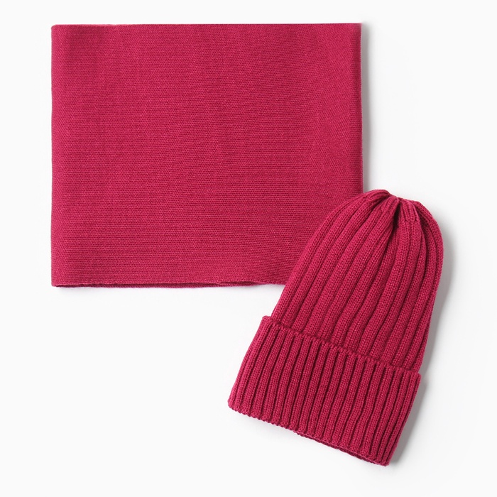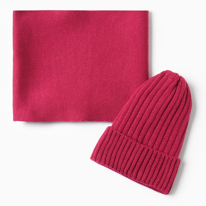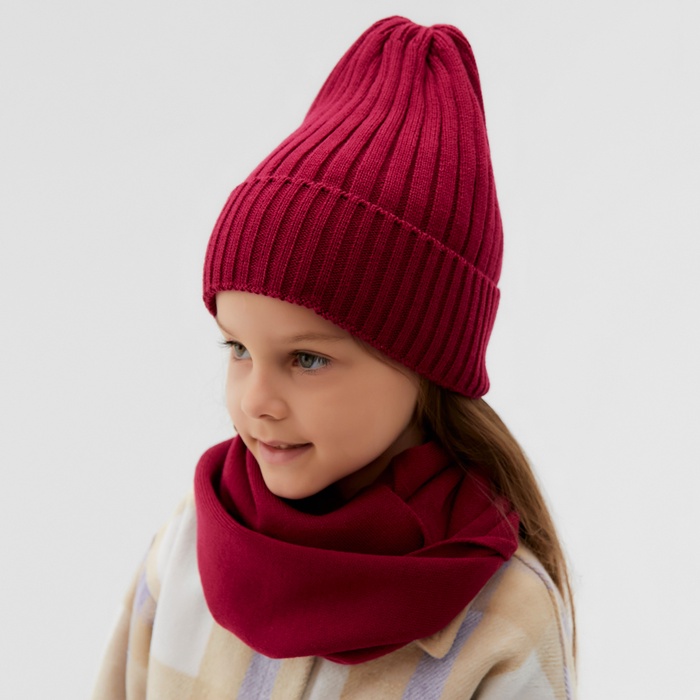 Комплект для девочки (снуд и шапка), цвет малина, размер 48-52