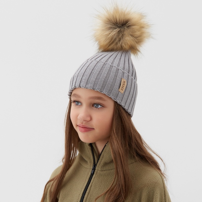 Шапка для девочки, цвет серый, размер 48-52