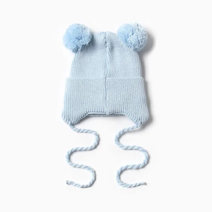 Шапка вязаная детская, цвет синий, размер 35-38см (1-3 мес.)