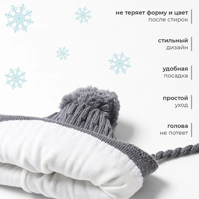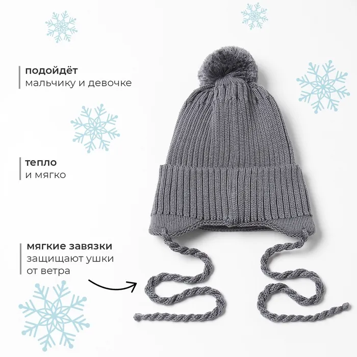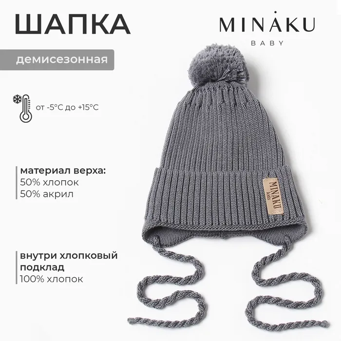 Шапка детская MINAKU, р-р 35-40, цвет серый — Характеристики
