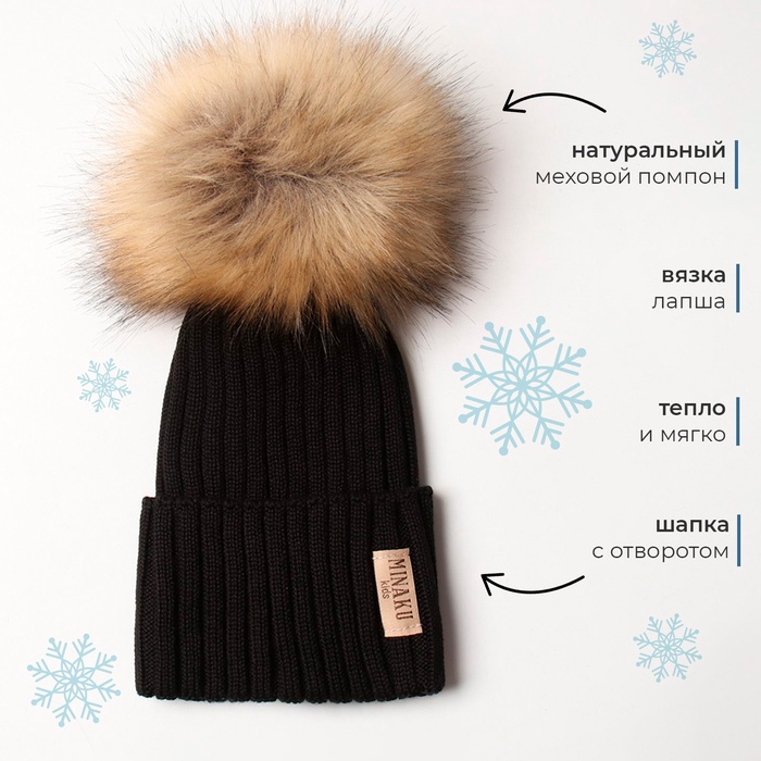 Шапка детская MINAKU р-р 44-46, цвет черный — Характеристики
