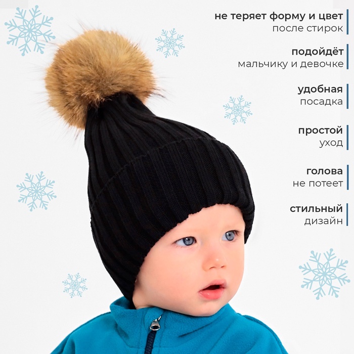Шапка детская MINAKU р-р 48-50, цвет черный — Характеристики