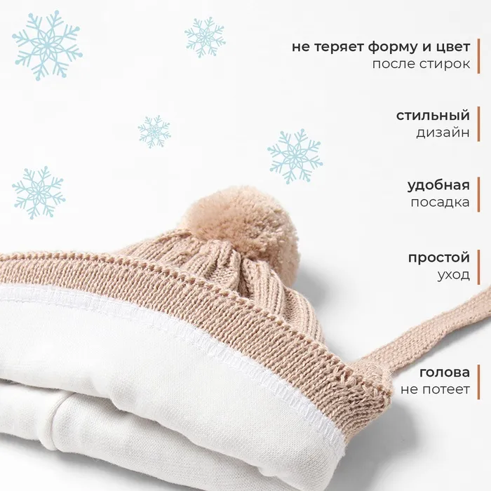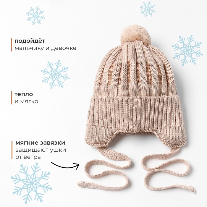 Шапка детская MINAKU, размер 44-46 (9 мес. - 1 год), бежевая — Характеристики