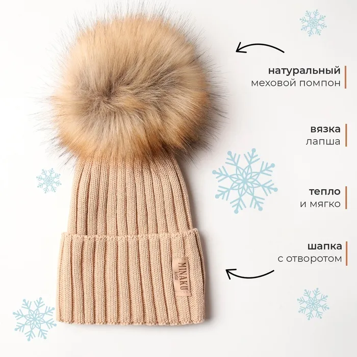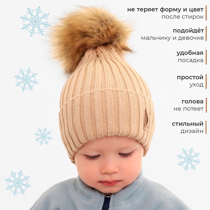 Шапка детская MINAKU, размер 46-48, бежевая — Характеристики