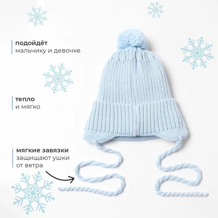 Шапка детская MINAKU, размер 46-48, голубая — Характеристики