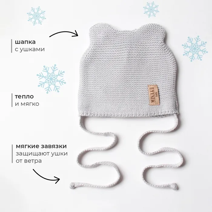 Шапка детская MINAKU, размер 46-48, серая — Характеристики