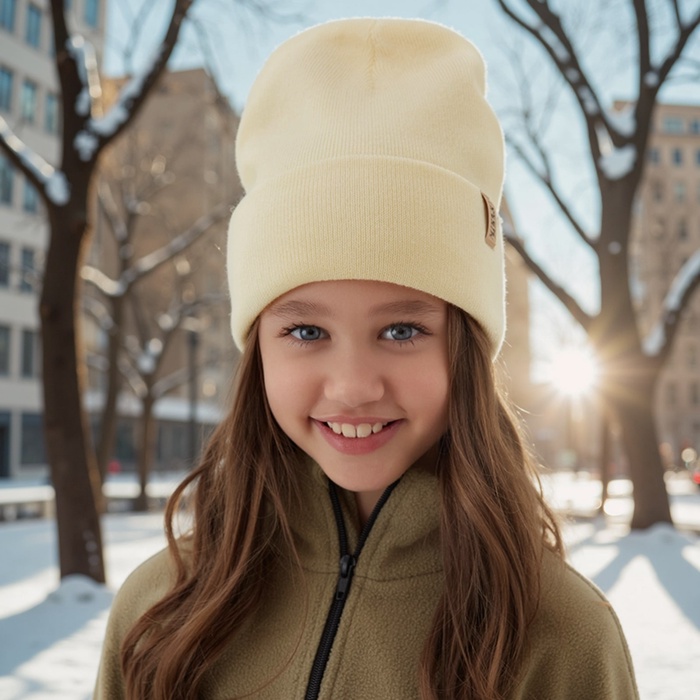 Шапка детская MINAKU р-р 35-40, цвет горчичный/бежевый