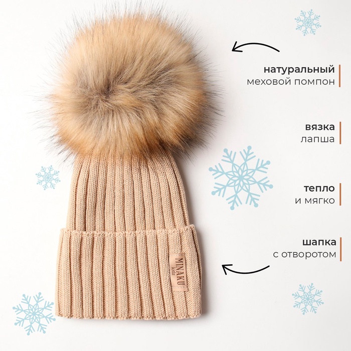 Шапка детская MINAKU, размер 48-50, бежевая — Характеристики