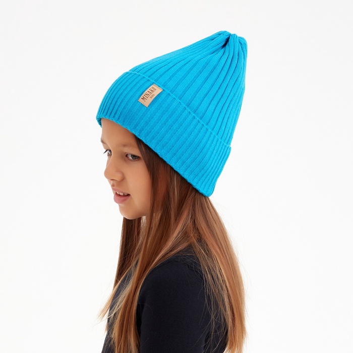 Шапка детская MINAKU с отворотом р-р 52-56, цв.бирюзовый